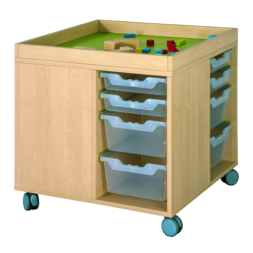 Bau- und Spielinsel mit Aufkantung transparente Boxen