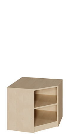 Dieses Inneneckregal in Dekor Buche hell mit 2 Fächern besitzt eine 8 mm starke Sichtrückwand und einen Korpus von 19 mm und einen festen Viertelkreiseinlegeboden.