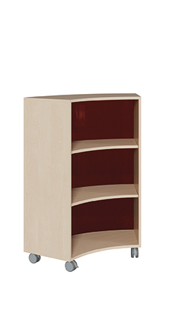 Sechstelkreisschrank auf Rollen in Dekor Buche hell mit 3 Fächern hat einen Korpus von 19 mm und 2 festen Einlegeböden.