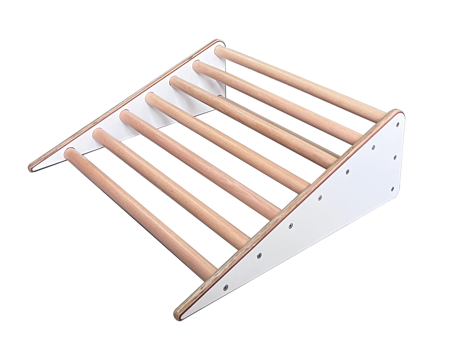 Dieses Kletterdreieck ist 20 cm hoch. Ideal für kleine Entdecker. Dieses Kletterdreieck hat Sprossen und kann einzeln genutzt werden oder in Kombination mit ähnlichen Elementen, z. B. Kletterinsel 5300 und Dreieck Rutsche 5301.