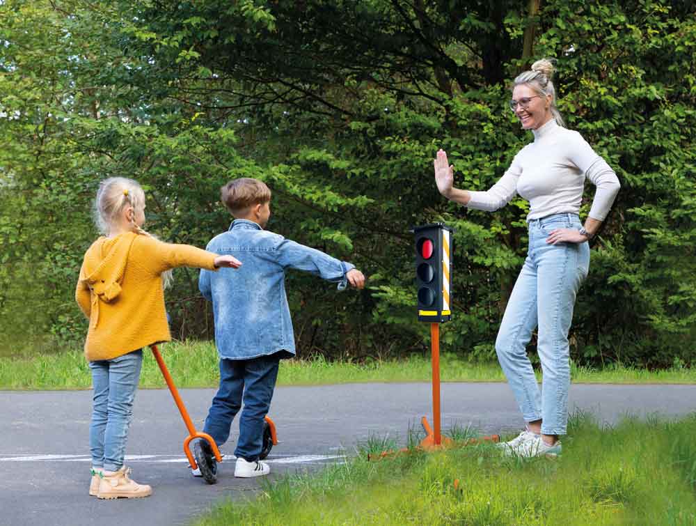 The children can set up obstacle courses or play at road traffic. The traffic light is also great for initial exercises on the topic of road safety education.