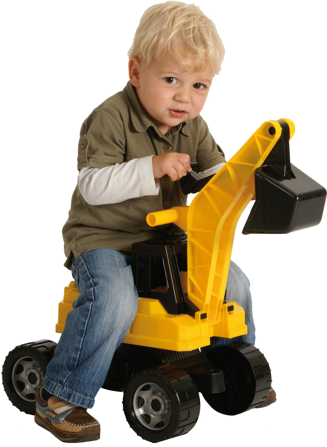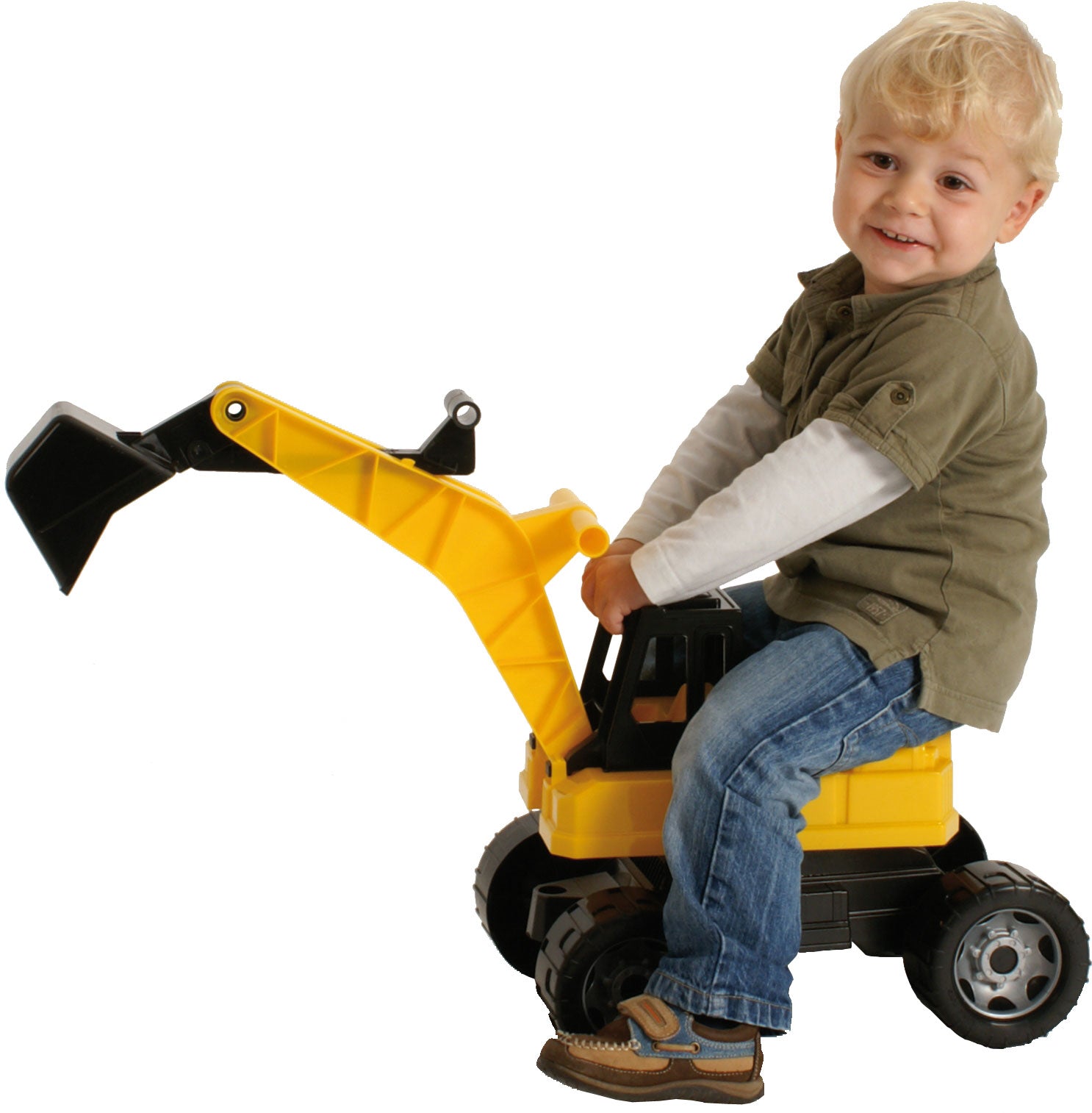 L'excavatrice, d'une longueur de 80 cm lorsque le godet est entièrement déployé, possède des essieux en acier galvanisé de 6 mm et est fabriquée en plastique de haute qualité, ce qui la rend robuste et stable.