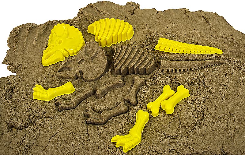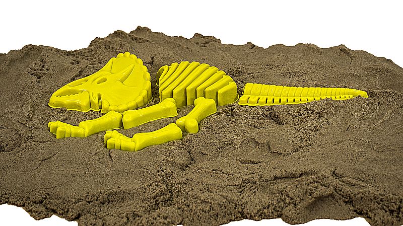 Les dinosaures dans le sable ont beaucoup de succès. Un dinosaure est composé de différentes parties et Il en résulte une taille d'environ 20 x 10 cm.