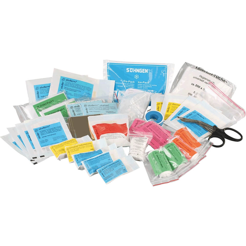 Le contenu de la trousse iAa DIN 13157 correspond approximativement à celui d'une petite trousse de premiers secours et est complété par des équipements supplémentaires sous forme de pansements de tailles adaptées aux enfants, ce qui rend ce contenu spécial idéal pour les enfants de maternelle, de garderie et d'âge préscolaire jusqu'à 6 ans.
