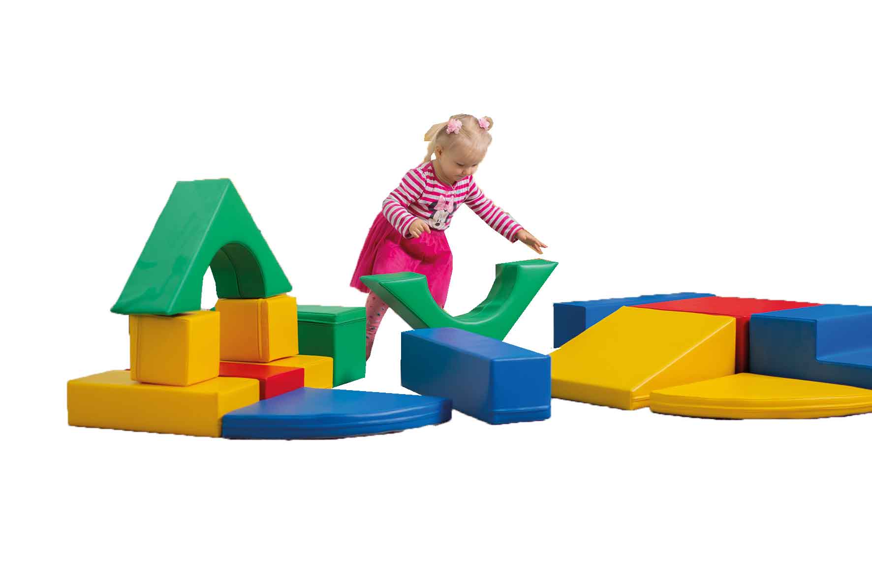 Le jeu de construction souple Soft Building Blocks - Ensemble créatif de 10 pièces comprenant Cuboïde 40 x 20 x 10 cm Cuboïde 40 x 20 x 20 cm Cube avec passage 40 x 40 x 40 cm Colonnes (2) 15 x 15 x 60 cm Marche 40 x 40 x 20 cm Cuboïde 40 x 40 x 20 cm Rampe 40 x 40 x 20 cm Toit triangulaire 60 x 30 cm Quart de cercle 40 x 40 x 5 cm Disponible en multicolore, multicolore clair, gris-blanc, De couleur pastel ou blanche. Fabriquée en mousse souple, avec ses formes et tailles variées, elle offre à vos enfants d'innombrables possibilités de jeu imaginatif, de construction et d'exploration.