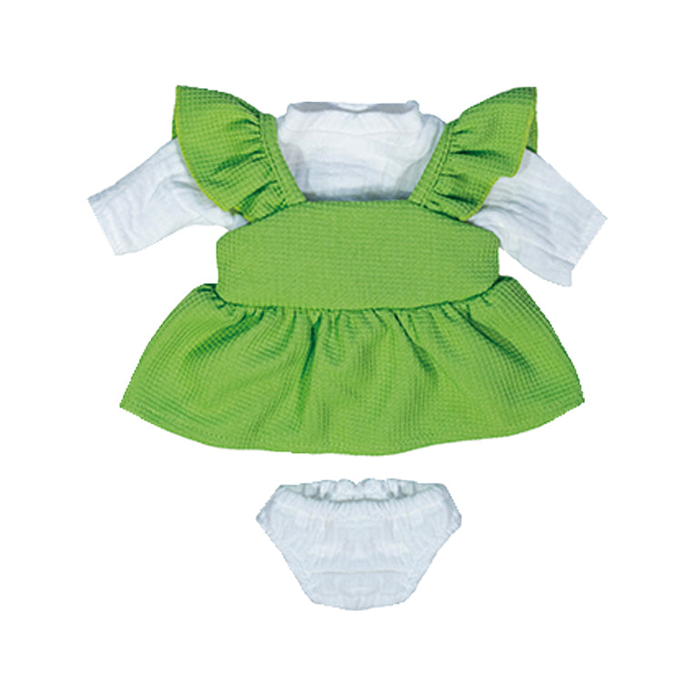Habillez votre poupée Miniland de 38 cm avec style pour la saison froide ! Cet ensemble douillet, composé d'une robe élégante, d'un pull chaud et d'une culotte assortie, gardera votre poupée bien au chaud – idéal pour des jeux de rôle imaginatifs pendant les journées d'hiver.