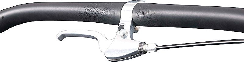 Le frein à main se trouve sur la poignée. Il existe également un frein de stationnement actionné au pied.