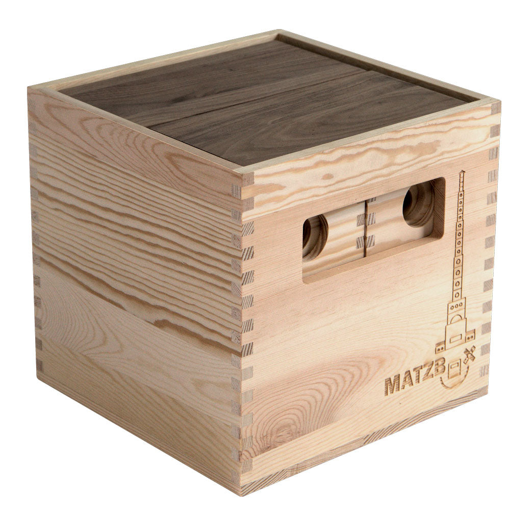 La Matzbox est bien plus qu'un simple jouet. La Matzbox est un kit de construction compact et créatif, fabriqué en bois naturel, qui a remporté de nombreux prix.