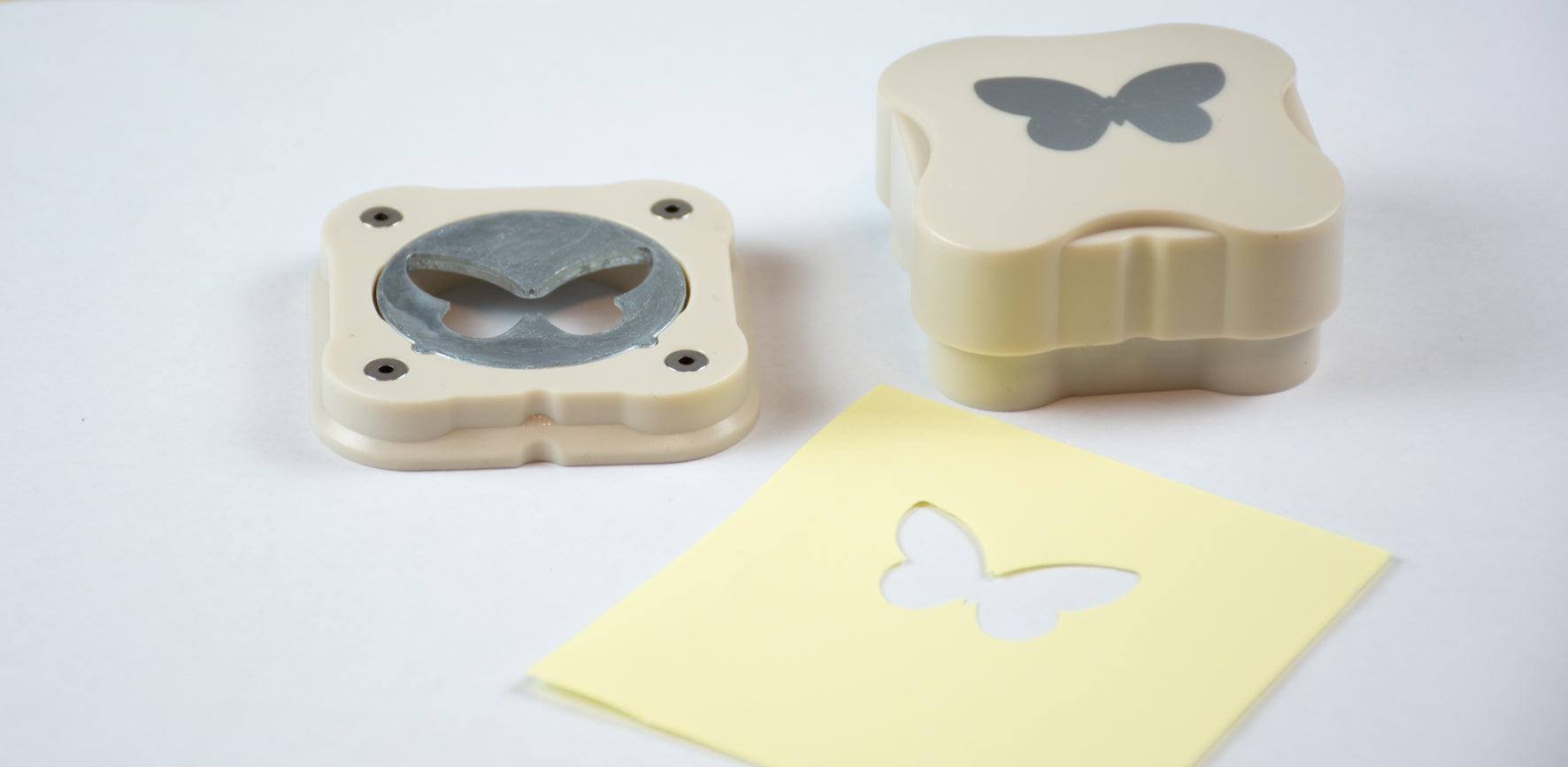 La perforatrice à motifs découpe des motifs d'environ 3,5 cm dans du papier, du carton, du papier aluminium ou de la mousse de caoutchouc.