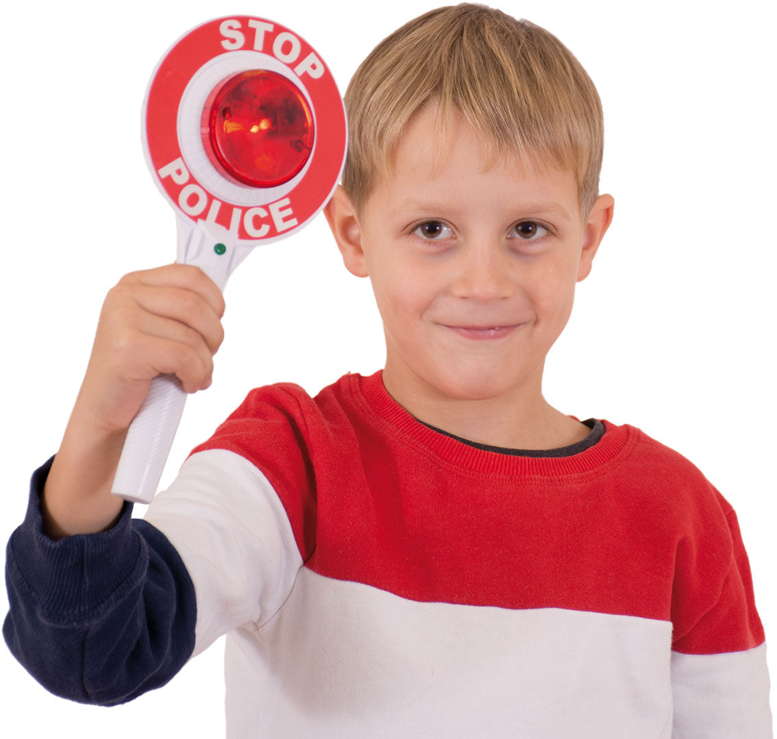 Matraque de police avec fonction lumineuse. La pagaie comporte un voyant rouge à l'avant pour « arrêt » et un voyant vert à l'arrière pour « avancer ».