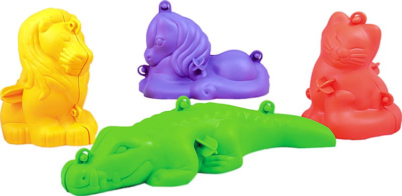 4 figurines : lion, crocodile, chat et poney