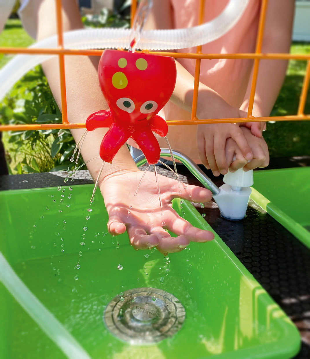Cela permet aux enfants de jouer avec l'eau de multiples façons et même de faire des expériences. La pompe et les tuyaux rendent cela possible.
