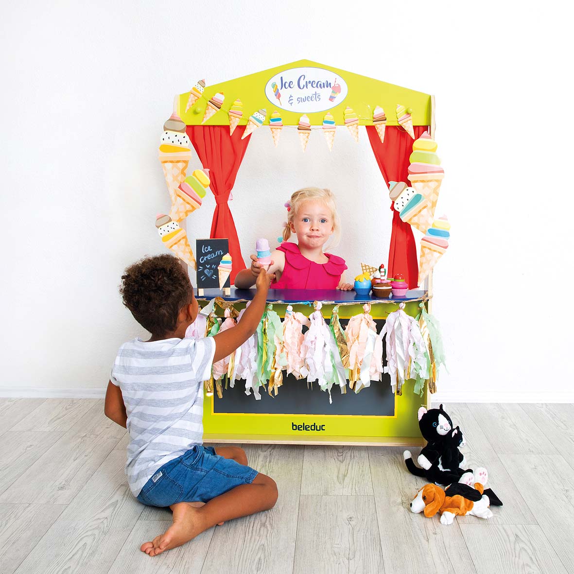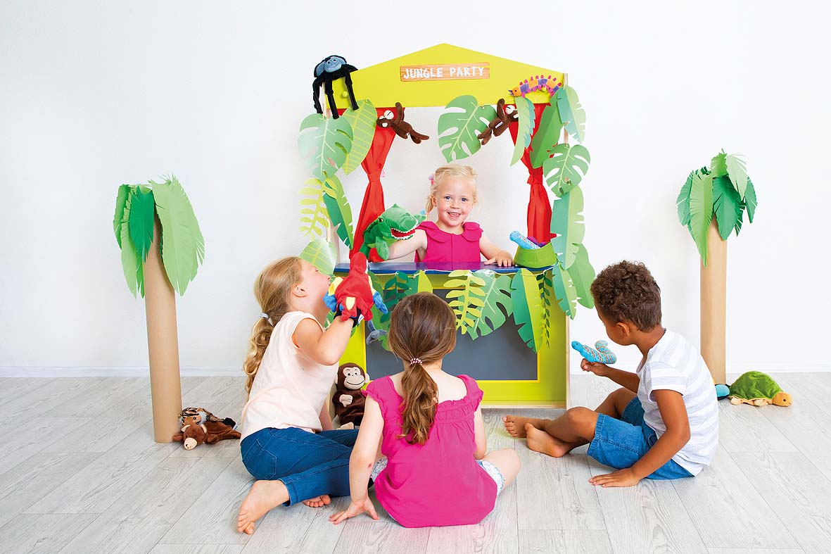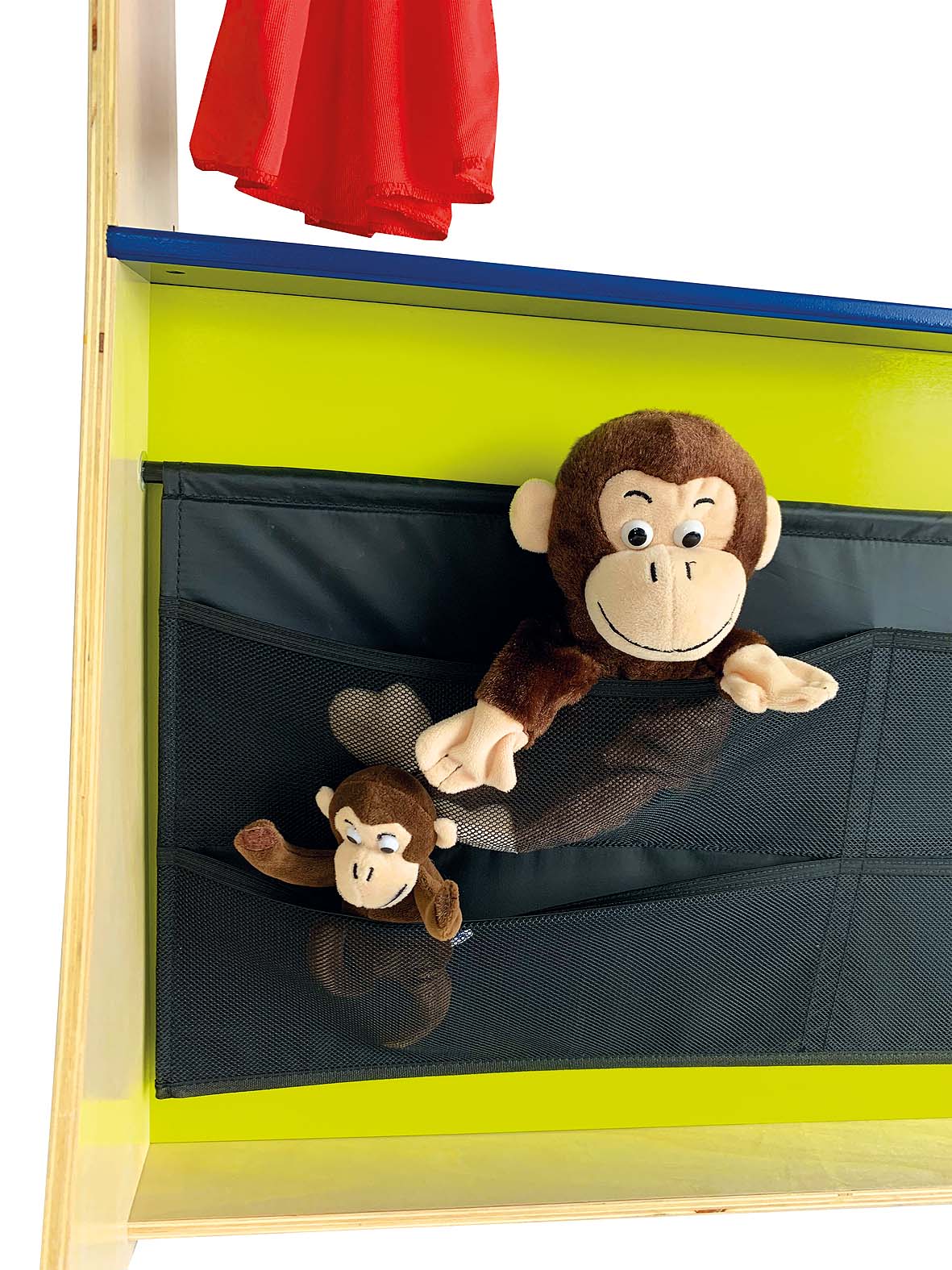 Grâce à ce théâtre d'action en tissu et en bois, les enfants peuvent jouer leurs petites pièces et se glisser dans de nouveaux rôles encore et encore.