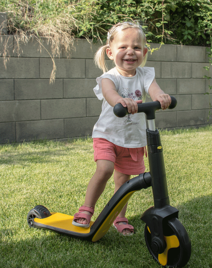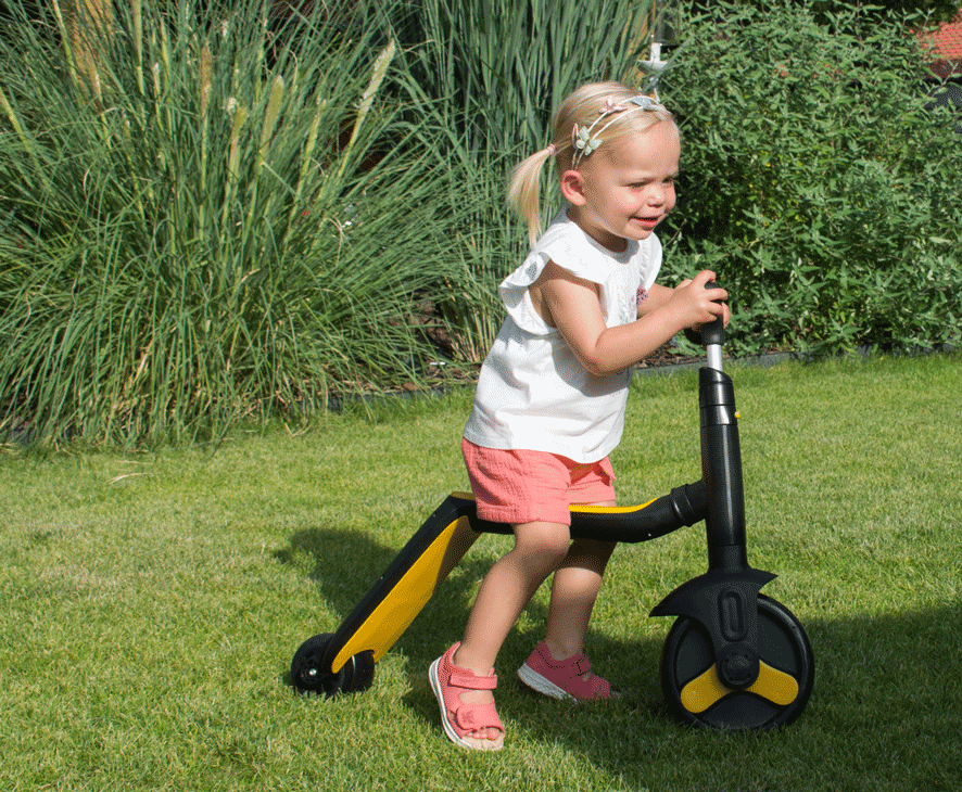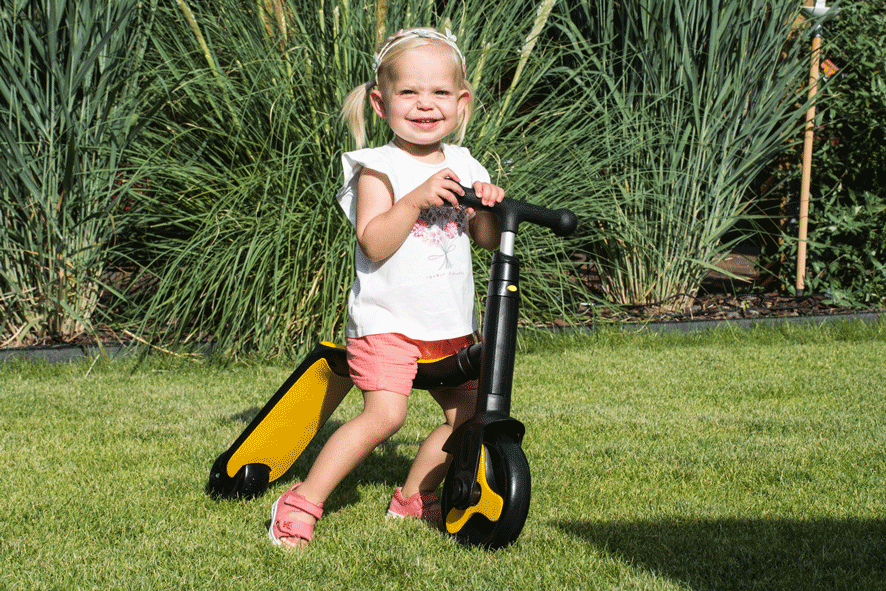 Cooles Wendefahrzeug - in Sekunden vom Roller zum Laufrad. Durch eine simple Drehbewegung am Lenker wandelt sich das Fahrzeug vom Roller zum Laufrad und wieder zurück. Dafür einfach am Ring ziehen und den Lenker drehen. Das alles ohne Werkzeug. Die Kids können sich spontan entscheiden ob sie mit dem Roller flitzen wollen oder mit dem Laufrad sitzend durch die Gegend kurven.