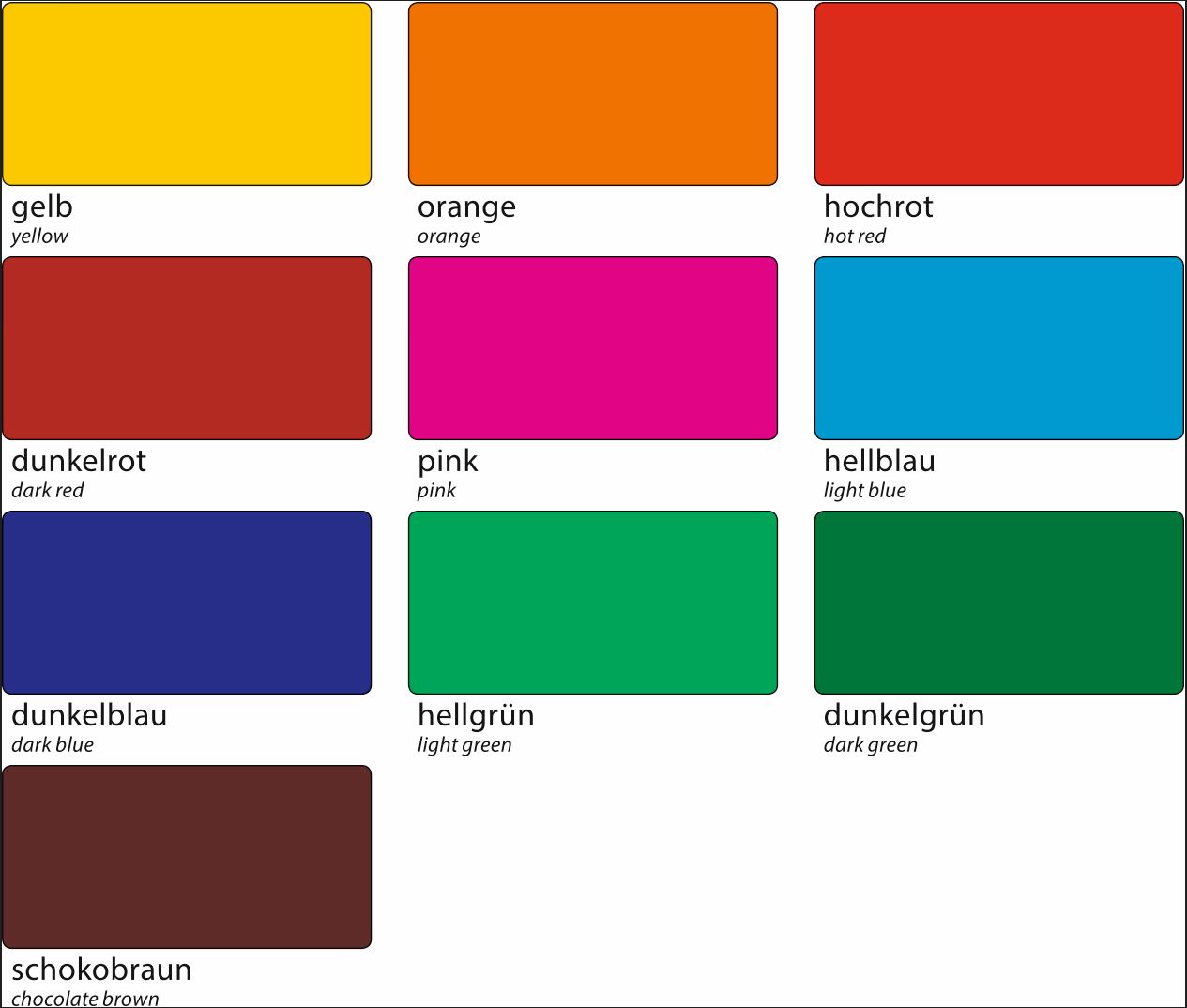 10 Blätter 35 x 50 cm in 10 Farben gemischt (gelb, orange, rot, dunkelrot, hellblau, blau, hellgrün, grün, braun)