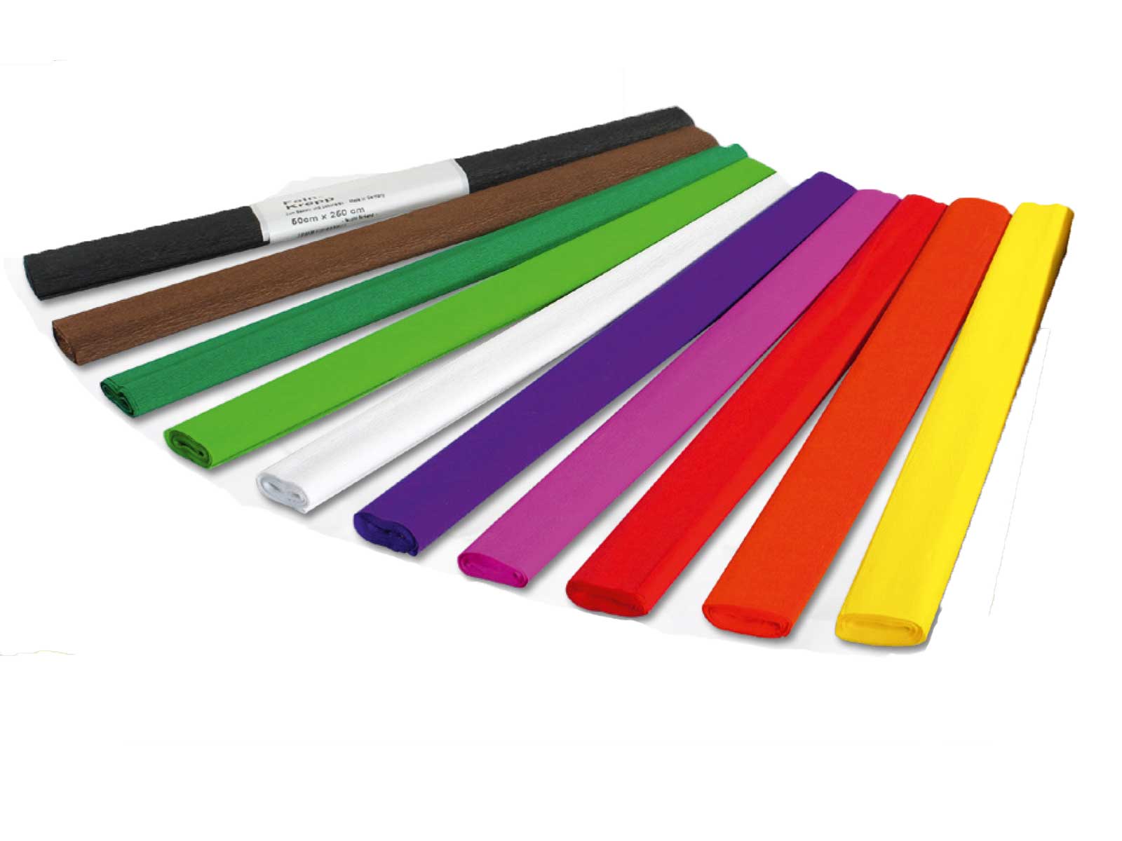 10 Rollen Bastelkrepp in 10 Farben sortiert (weiß,gelb,orange,rot,blau,hellblau,hellgrün,grün,braun,pink)