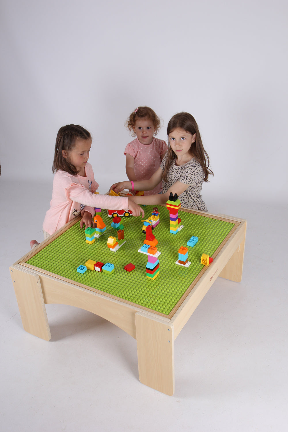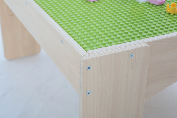 Dieser Spieltisch ist super geeignet für die klassischen große Kunststoffbausteine, wie zum Beispiel Lego duplo, Biobuddi Big.