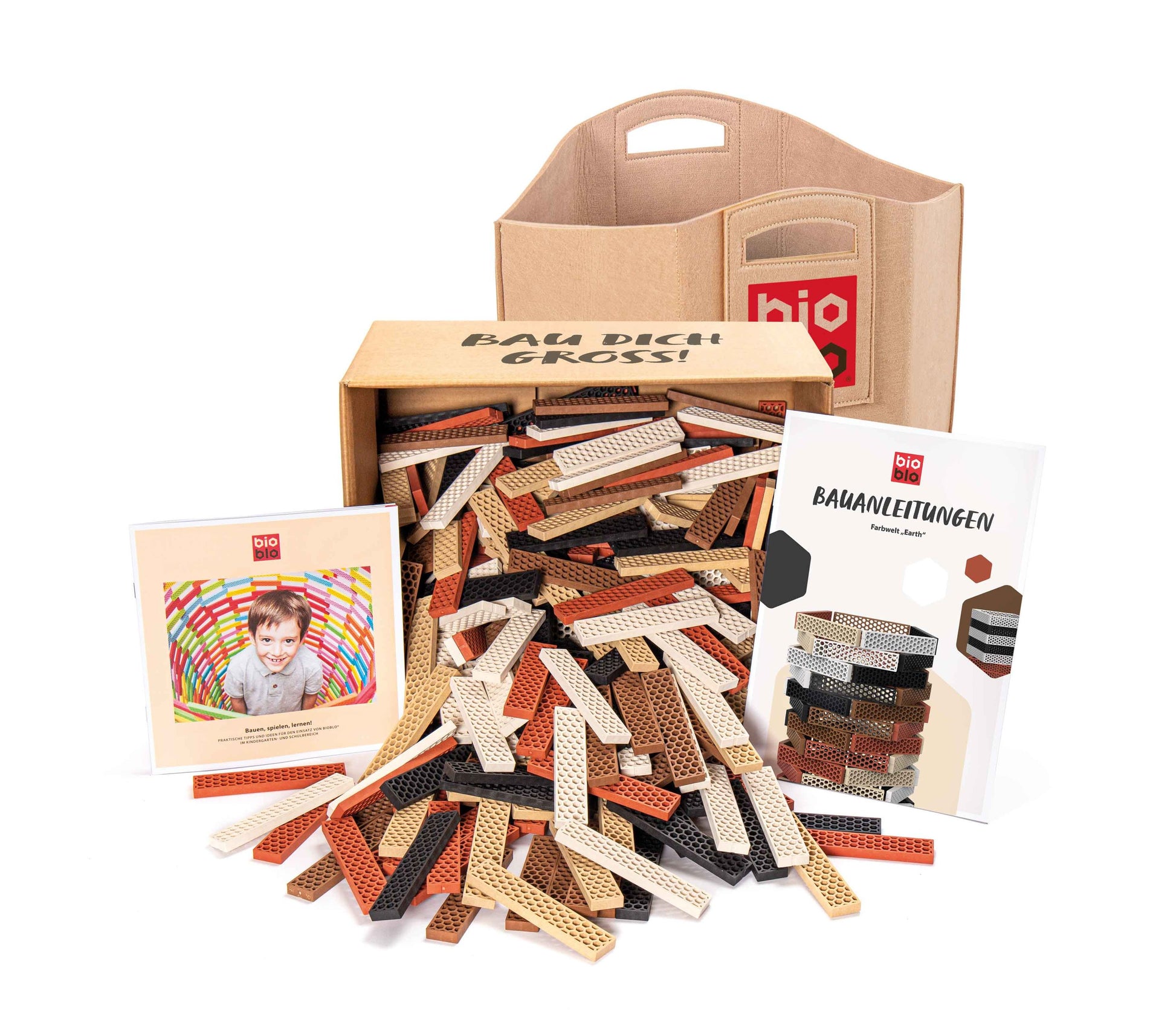 - je 120 Bioblos in den Farben weiß, beige, ziegelrot, braun und schwarz