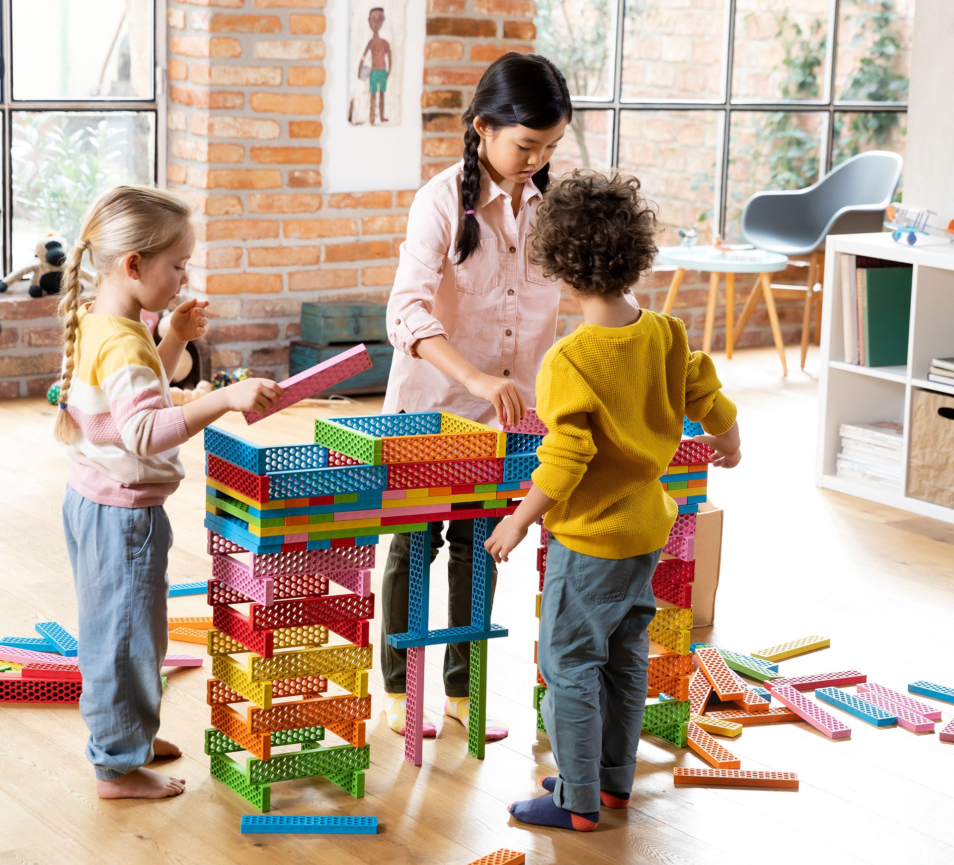 - fördert Koordination und Teamwork beim kreativen Bauen