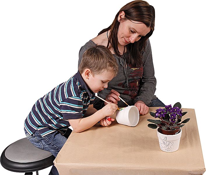 - der Blumentopf hat auf einer Seite ein schönes Motiv zum Ausmalen
