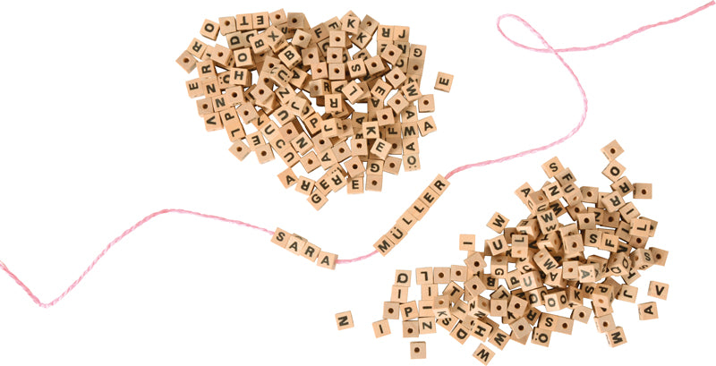 zum Spielen, Rätseln, Basteln oder, um das ABC am laufenden Band zu üben. Inhalt: circa 300 Holzwürfel mit Buchstaben von A bis Z + Umlaute. Keine Schnüre enthalten.