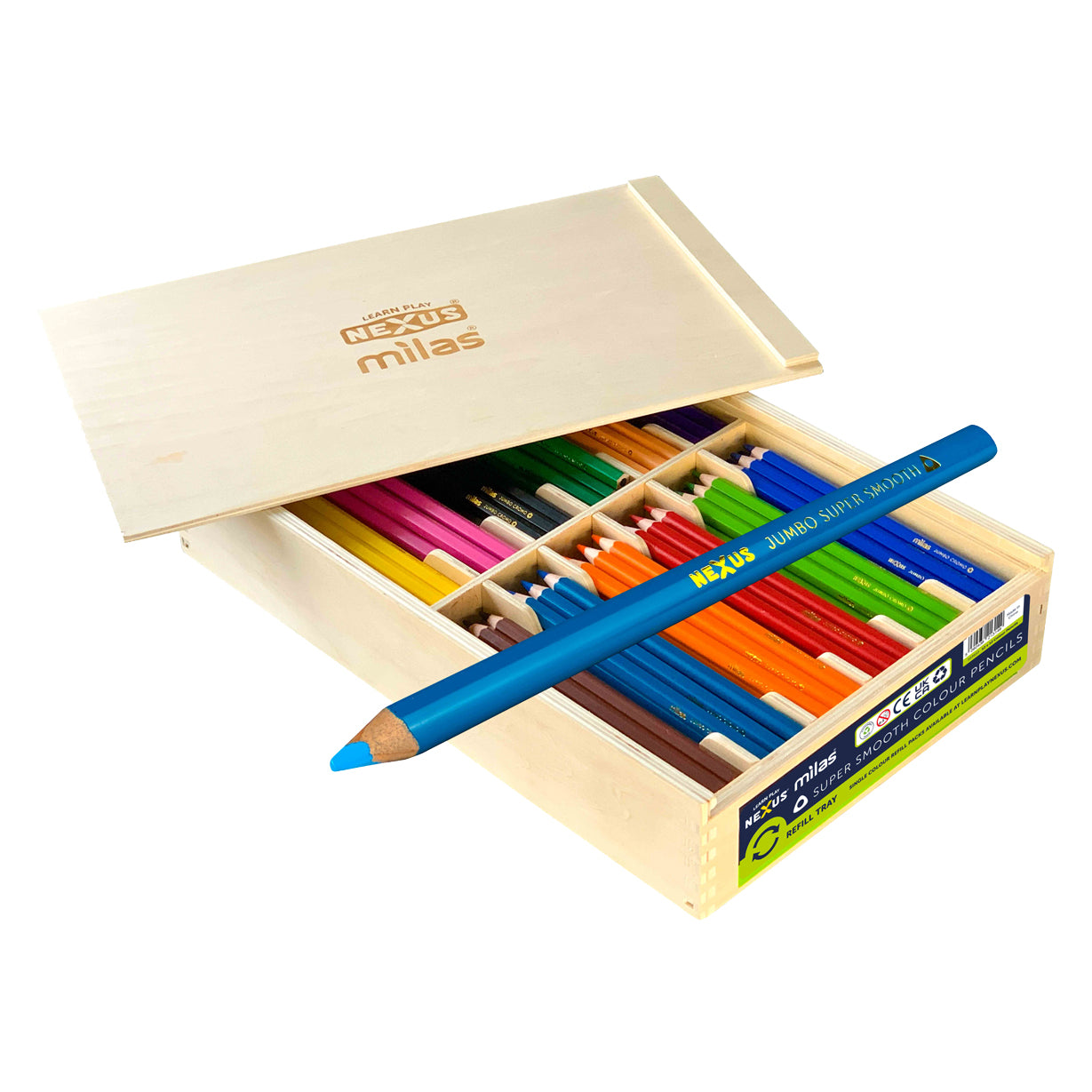 Das Buntstifte-Set besticht durch sehr naturgetreue und kräftige Farben. Es eignet sich ideal für große und kleine Künstler. Durch die ergonomische Dreieckform liegen die Buntstifte besonders gut in der Hand. Alles gut verstaut in einer großen Holzbox mit Deckel.