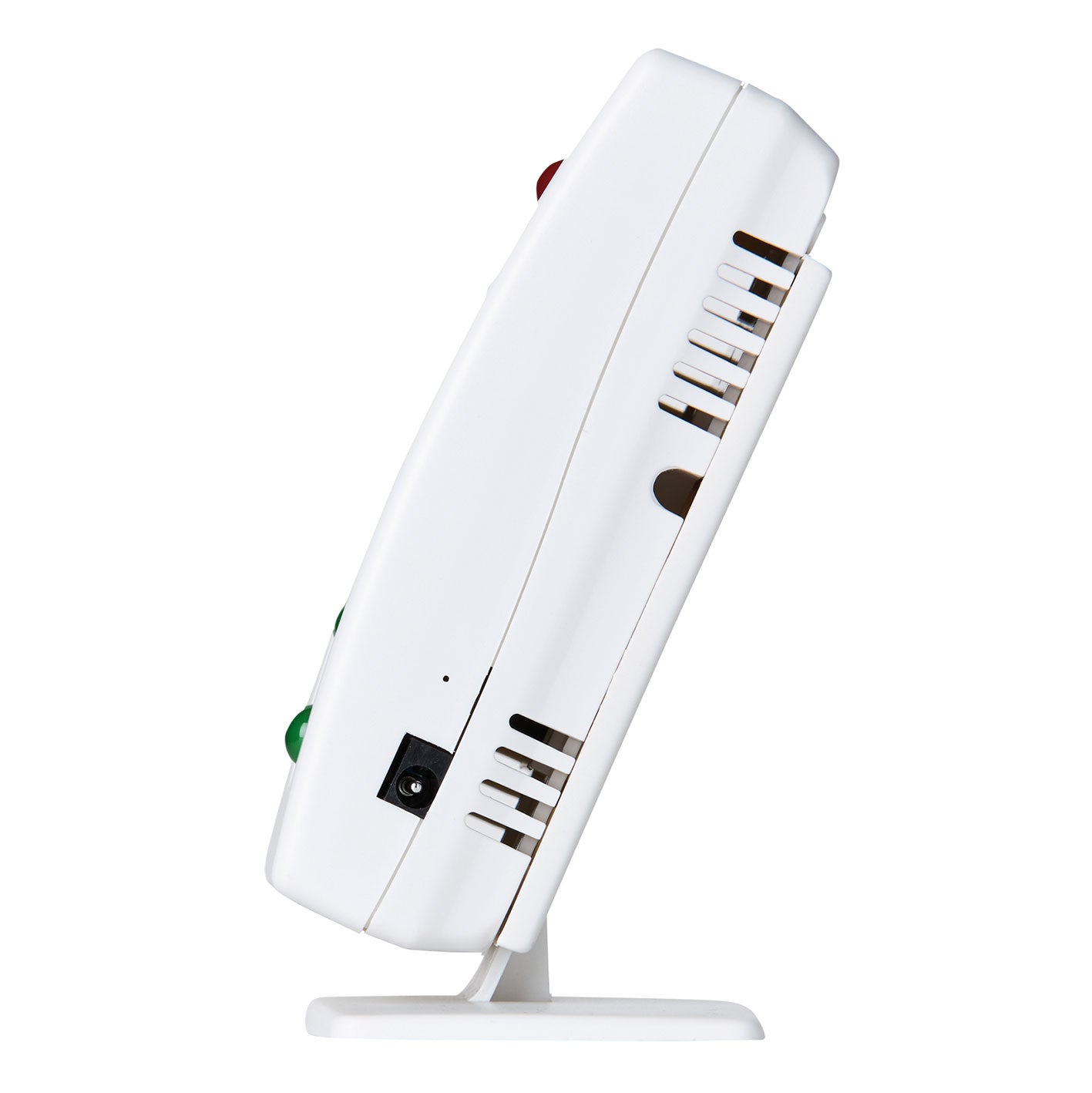 Das mikroprozessorgesteuerte CO2– Messgerät dient zur Erfassung des CO2-Gehaltes der Luft im Bereich von 0 bis 3.000 ppm. Die Messsignale werden optisch durch 6 farbige LED´s wiedergegeben. Der CO2– Gehalt der Luft wird mittels einem optischen Sensor (NDIR), nicht- dispersive Infrarot-Technologie, ermittelt. Durch die Verwendung des Sensors nach dem Dual– Prinzip können Störungen der Messung durch Verschmutzung und Alterung weitestgehend ausgeschlossen werden, so dass eine lange Funktionszeit des Gerätes sichergestellt ist. Eine Kalibrierung muss unter normalen Einsatzbedingungen nicht erfolgen. Der Einsatzbereich der CO2– Ampel ist besonders in Lehrräumen und Tagungsräumen zu empfehlen, da durch ein kontrolliertes Lüftungsverhalten das maximale CO2– Raumluftkonzentration in Grenzen gehalten wird und somit die Konzentrationsfähigkeit gesteigert werden kann. Der Akustische Signalton kann ausgeschaltet oder auf verschiedene CO2 Werte (900 ppm, 1.200 ppm,1.500 ppm,1.800ppm) eingestellt werden. Werksseitig ist der Wert 1.500 ppm eingestellt. Die CO2 Ampel hat folgende Analog- Ausgänge: 0-10 V (werkseinstellung) (2-10V), 4-20 mA (0-20 mA). Im Lieferumfang ist ein Netzstecker (230 V /24V) sowie ein Tischständer enthalten. Die Montage der CO2 Ampel kann auf der Wand oder auf einer Schalterdose erfolgen. Mit dem Tischständer ist die Ampel für den mobilen Einsatz sehr geeignet.