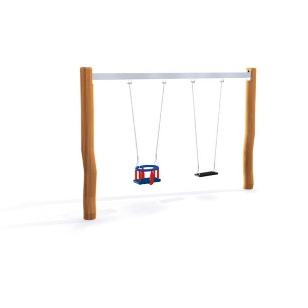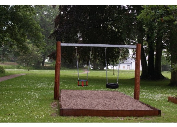 Massive Akazienstämme mit einem stabilen Zwischenteil aus Stahl, passend für 2 Schaukelelemente.