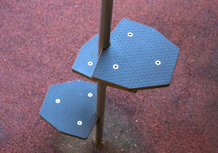 - Podeste und Kletterwände aus rutschfestem und wasserfester Mulitplaxplatte oder HPL-Platten,