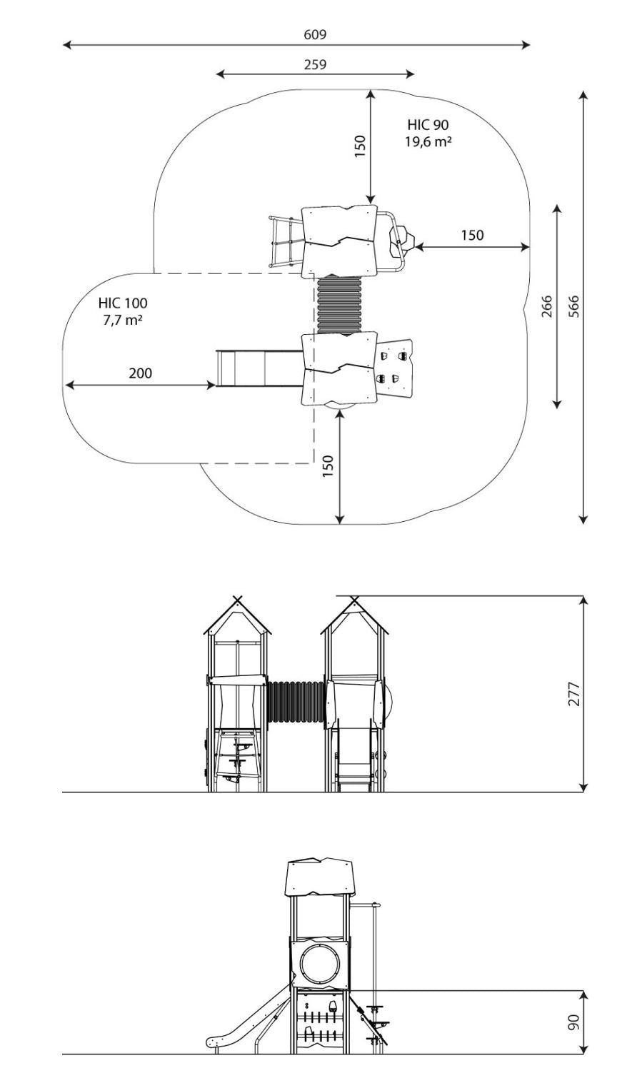 Elemente: 2 Spielturm, 90 cm Podesthöhe (Fallschutz erforderlich)