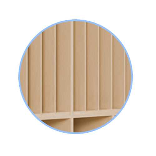 Gegen einen Mehrpreis liefern wir alle unsere Liegepolsterschränke auch mit durchgehenden Trennwänden für 4, 5 oder 6 Polster - wählbar.