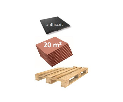 Die Fallschutzplatte mit einer Größe von 50 x 50 cm gibt es in verschiedenen Stärken, dieses ist abhängig von der vorhandenen Fallhöhe.