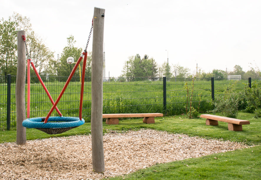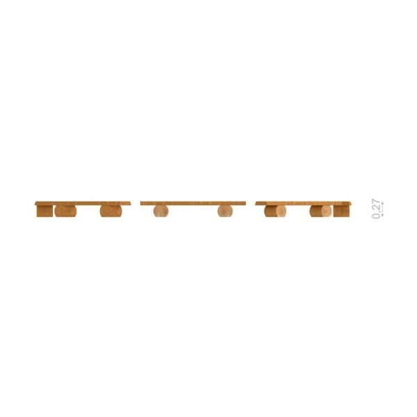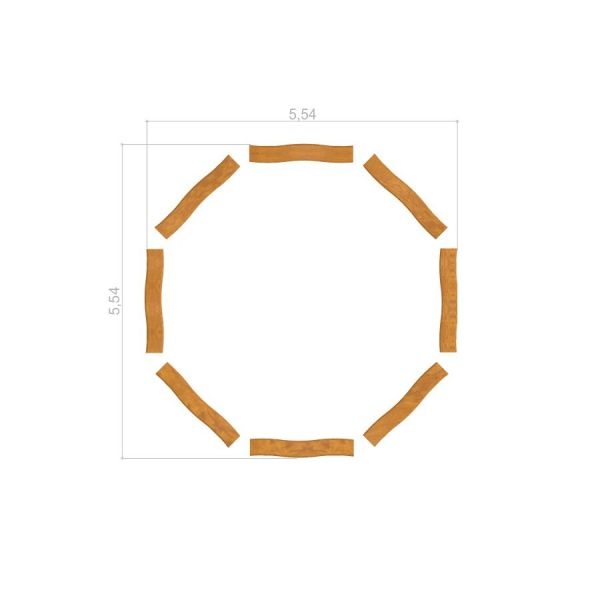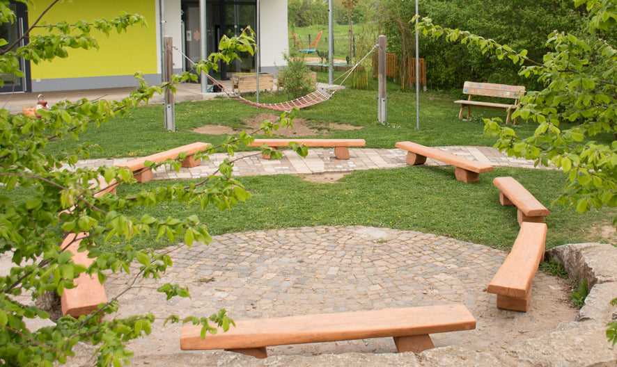 Diese Feuerstelle besteht aus 8 Massivholzbänken aus Akazienholz.