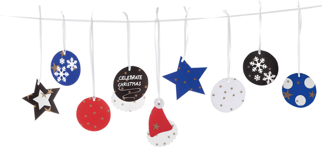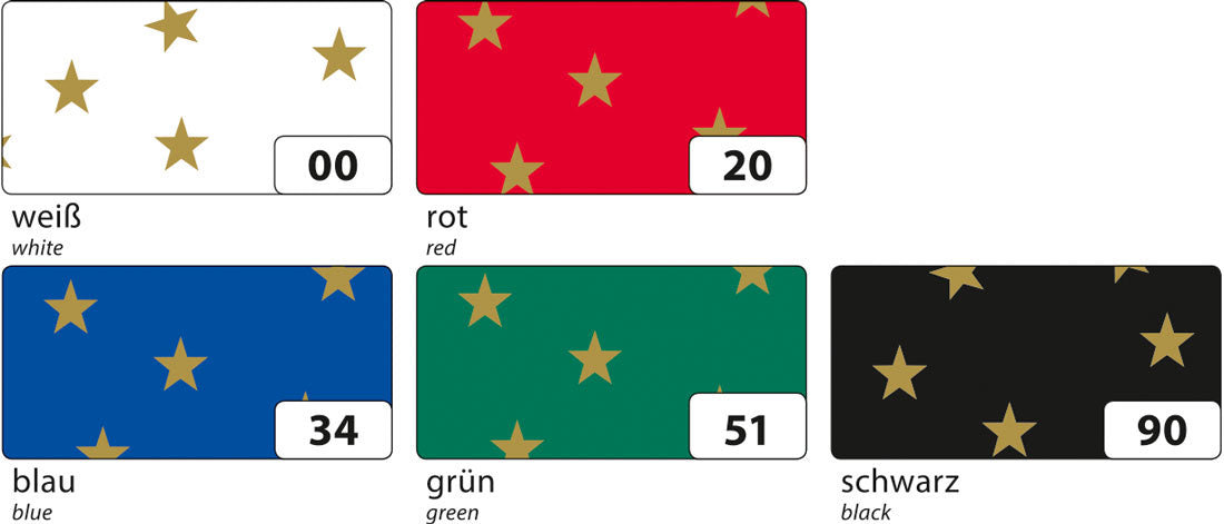 2-seitig bedruckt, goldene Sterne auf farbigem Untergrund Farben weiß, rot, blau, grün oder schwarz.