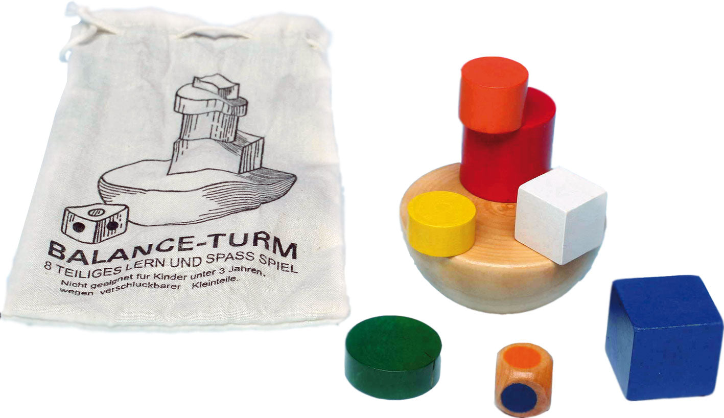 Es müssen mit ruhiger Hand die verschiedenen Formen auf die Halbkugel gestapelt werden. Doch wenn die Halbkugel ins Wanken gerät und die Formen fallen herunter, hat derjenige leider verloren.