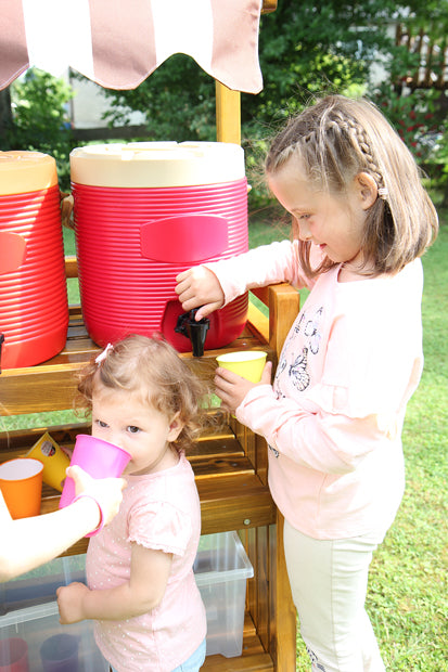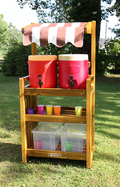 Die Getränkestation für den Außenbereich bietet reichlich Platz für zwei große Getränkespender, viele Becher und Tassen. Das Stoffdach bietet ausreichend Schatten und ist witterungsbeständig. Die Getränkestation wurde aus Kiefernholz gefertigt. Durch die natürliche Holzöl-Wachslasur ist es wasserabweisend und langlebig.