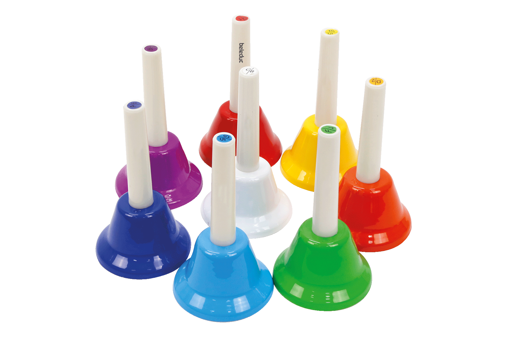 Jede Glocke klingt anders. Ein fröhliches Musizieren in der Gruppe. Die Glocken haben unterschiedliche Farben und jede Farbe klingt anders. Zusätzlich ist die Note auf dem Griff gedruckt.