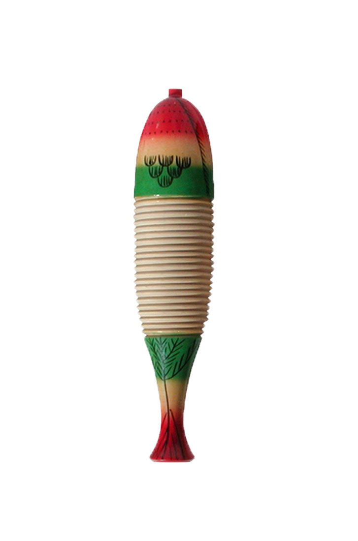 Der mexicanische Guiro liegt perfekt in der Hand durch die fischähnliche Form. Ihm läßt sich der charakteristische schnarrende Sound entlocken. Der Scraper ist im Lieferumfang enthalten.