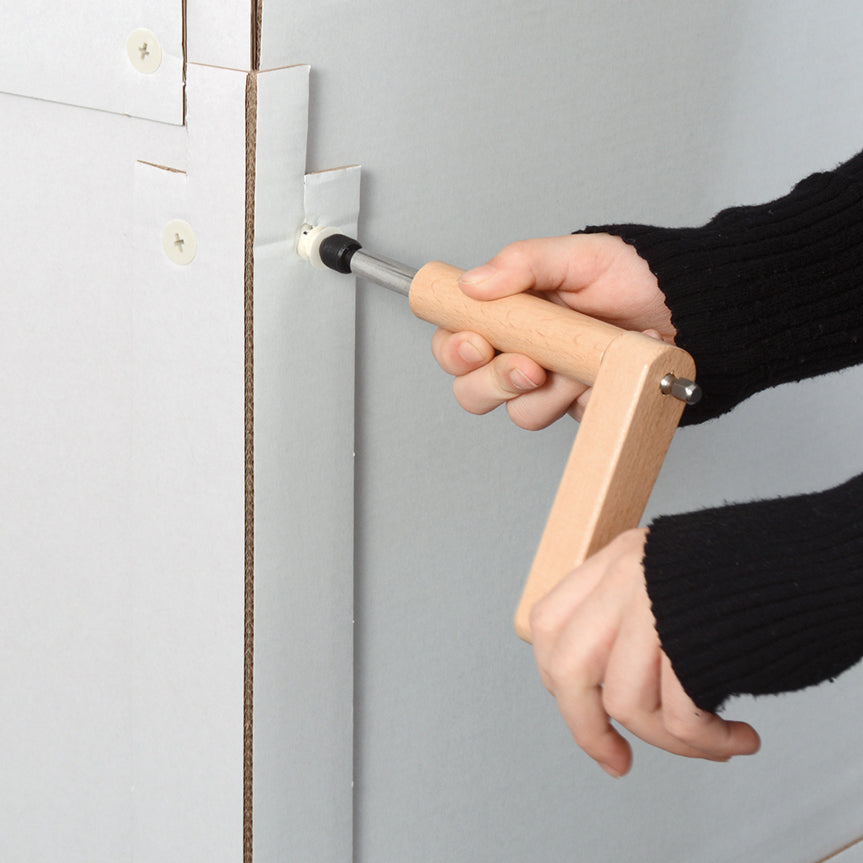 Schraubt Karton und Pappe zusammen, man kann sie wieder lösen und neu verwenden. So entstehen Häuser und Höhlen aus altem Karton.