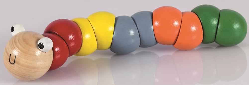 Farbenfroher Holzwurm zum Biegen. Fördert die sensorische Wahrnehmung, Motorik und den Tastsinn.