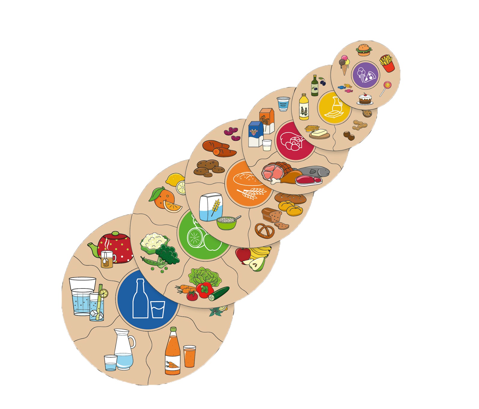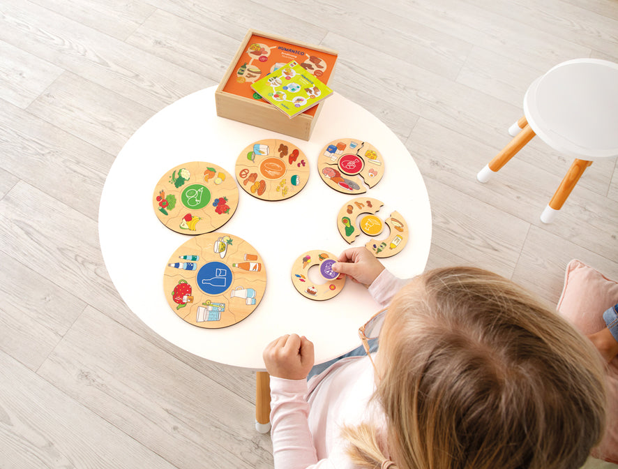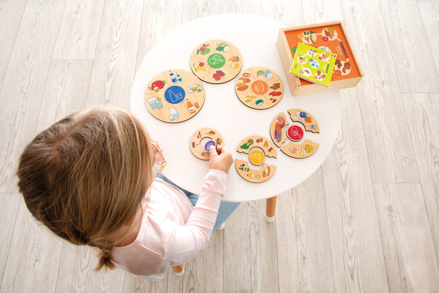 In diesem Zuordnungspuzzle dreht sich alles um die gesunde Ernährung. Es wird in sechs Kategorien unterschieden, zu denen die jeweils passenden Lebensmittel zugeordnet werden. Die Ebenen können fertig gepuzzelt auch neben- oder übereinander gelegt werden und bilden somit eine Ernährungspyramide. So wird klar, wovon mehr oder weniger gegessen werden sollte.