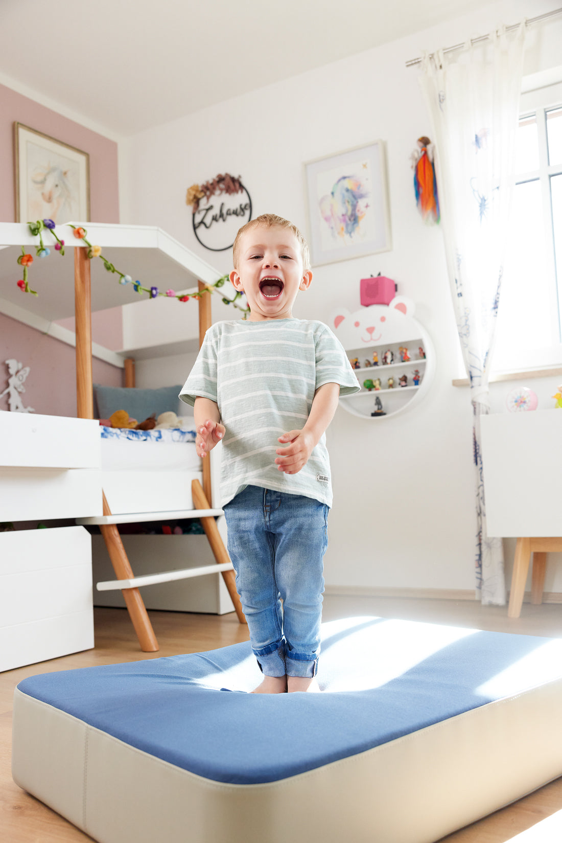 Vergiss daher das Sofa - das Hüpfkissen für Innen und Außen, toben, spielen, chillen, kuscheln.