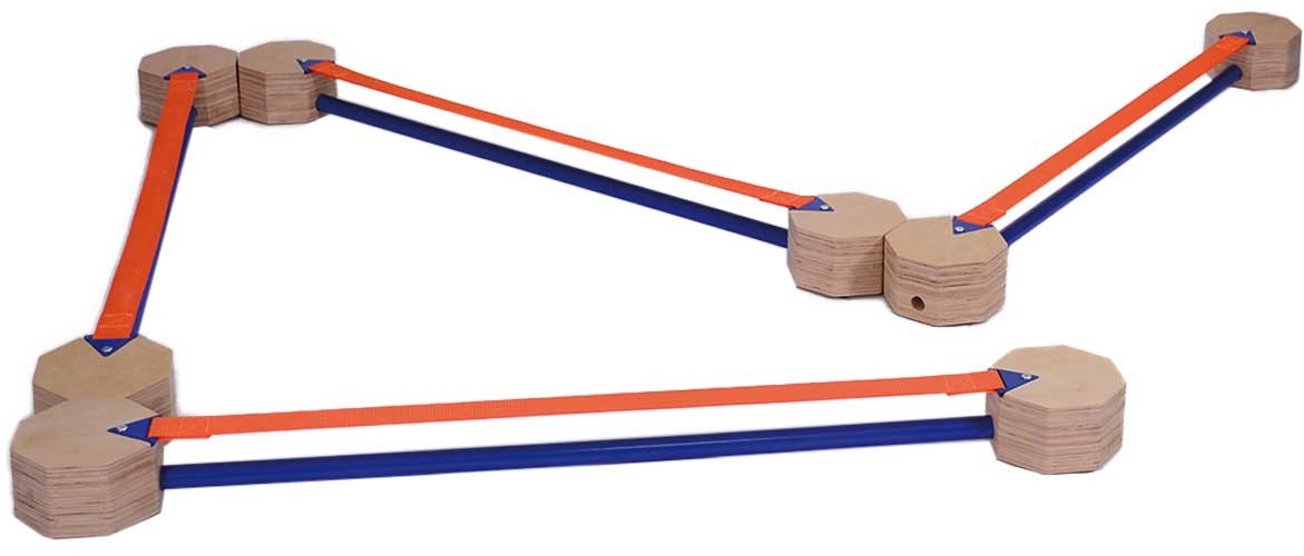Das schnelle und sichere Spann-System hält die 5 cm breite Linie immer straff. Die 6-eckigen Pole geben viele Kombinationsmöglichkeiten und Erweiterungsideen.