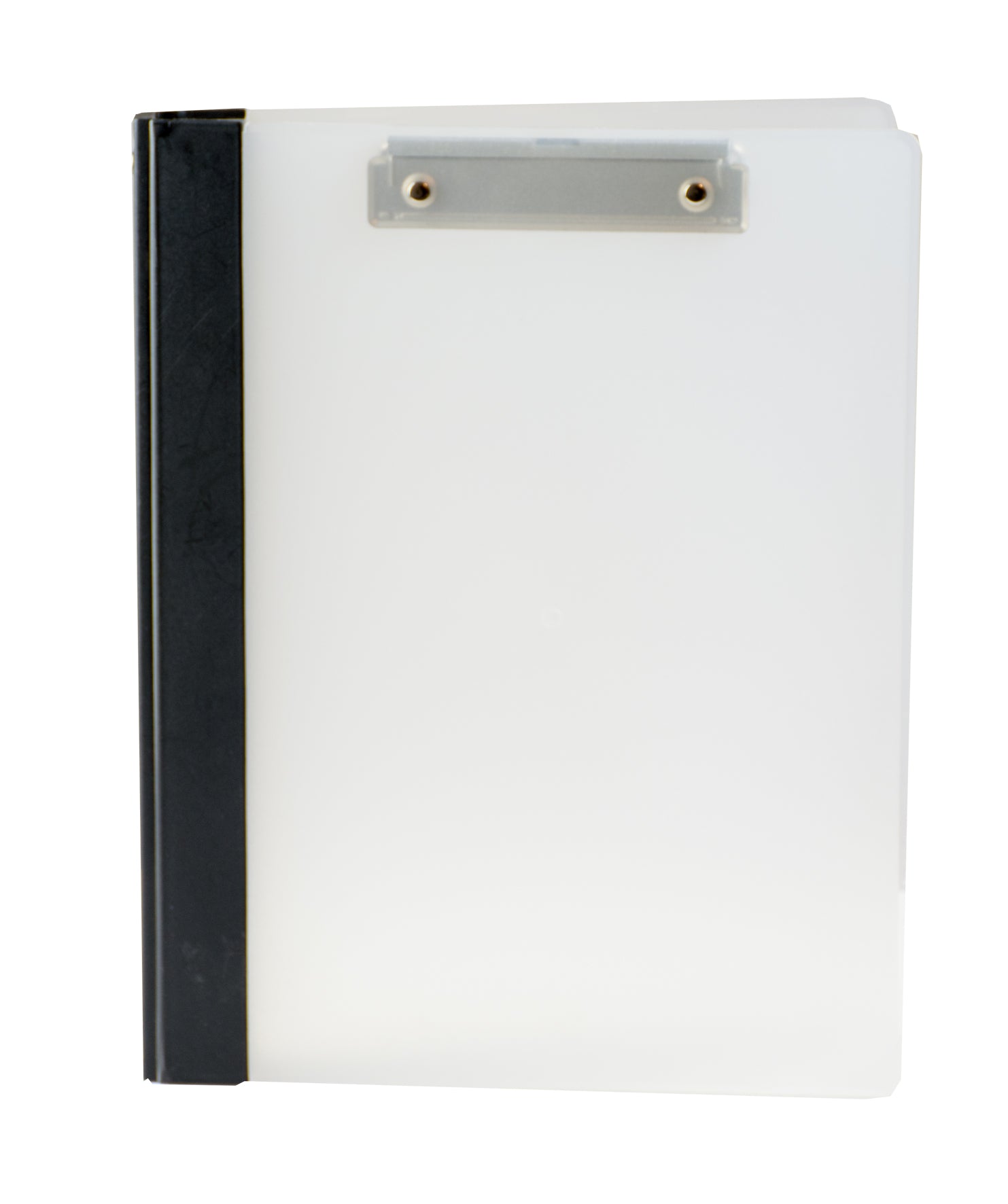 Feste, stabile Mappe / Klemmbrett aus Kunststoff mit stabilen Rücken. Auch das mehrfache Auf und komplette Umklappen der Mappe hält der stabile Rücken aus. Innenseite mit festem Klemmclip.