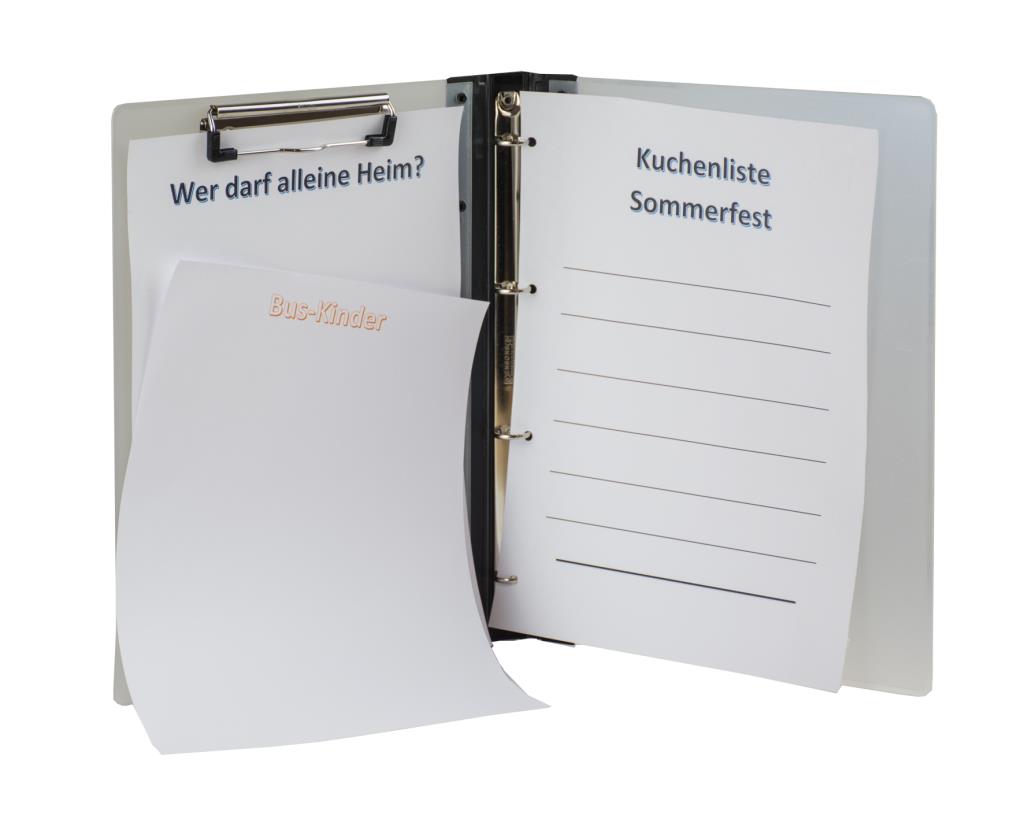 Das Klemmbrett ist milchig-transparent, sodass man von außen erkennen, "lesen", kann.