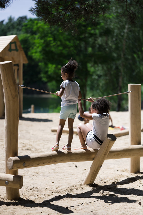 Die körperliche Entwicklung - das Gleichgewicht - gemeinsam hochziehen, klettern, duchkrabbeln. Eine Anlage, die mit den Ansprüchen der Kinder wächst.