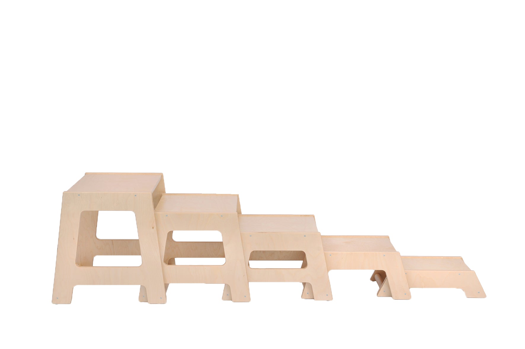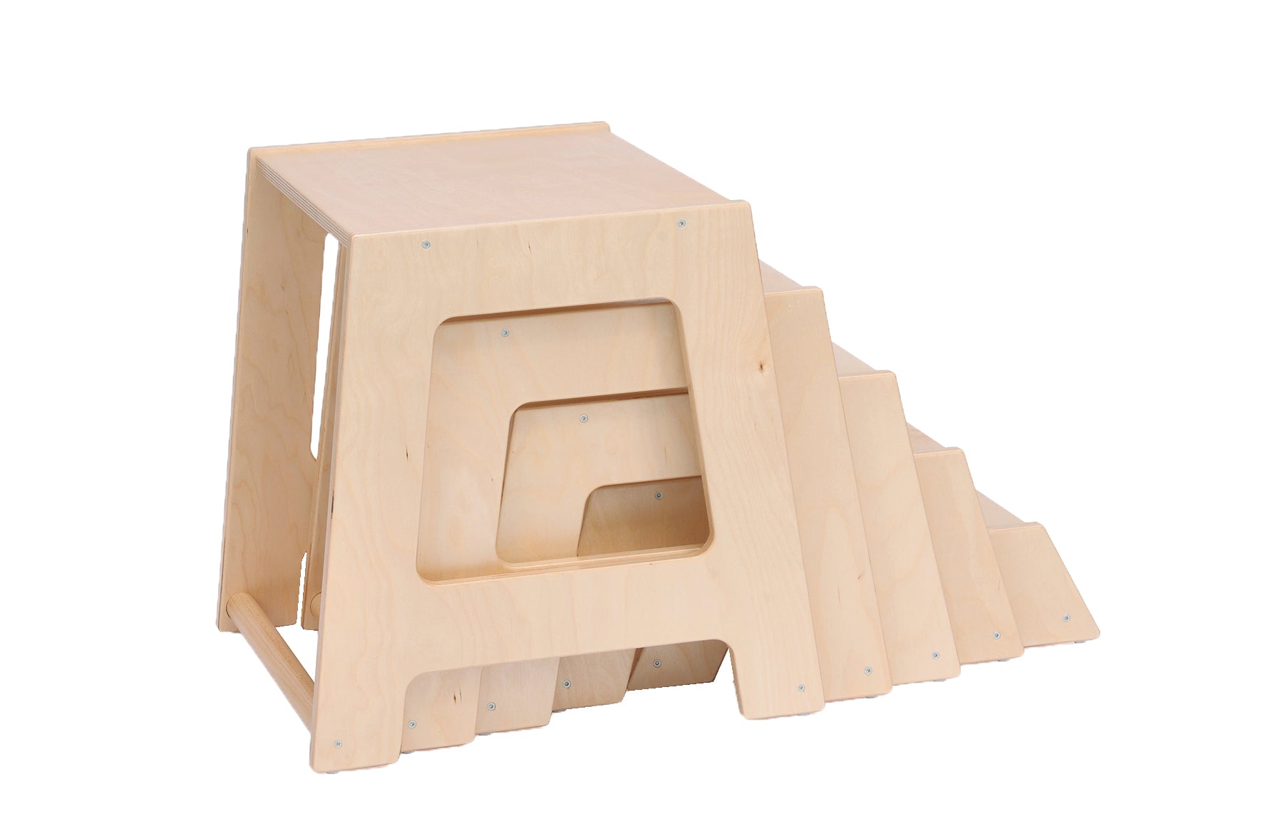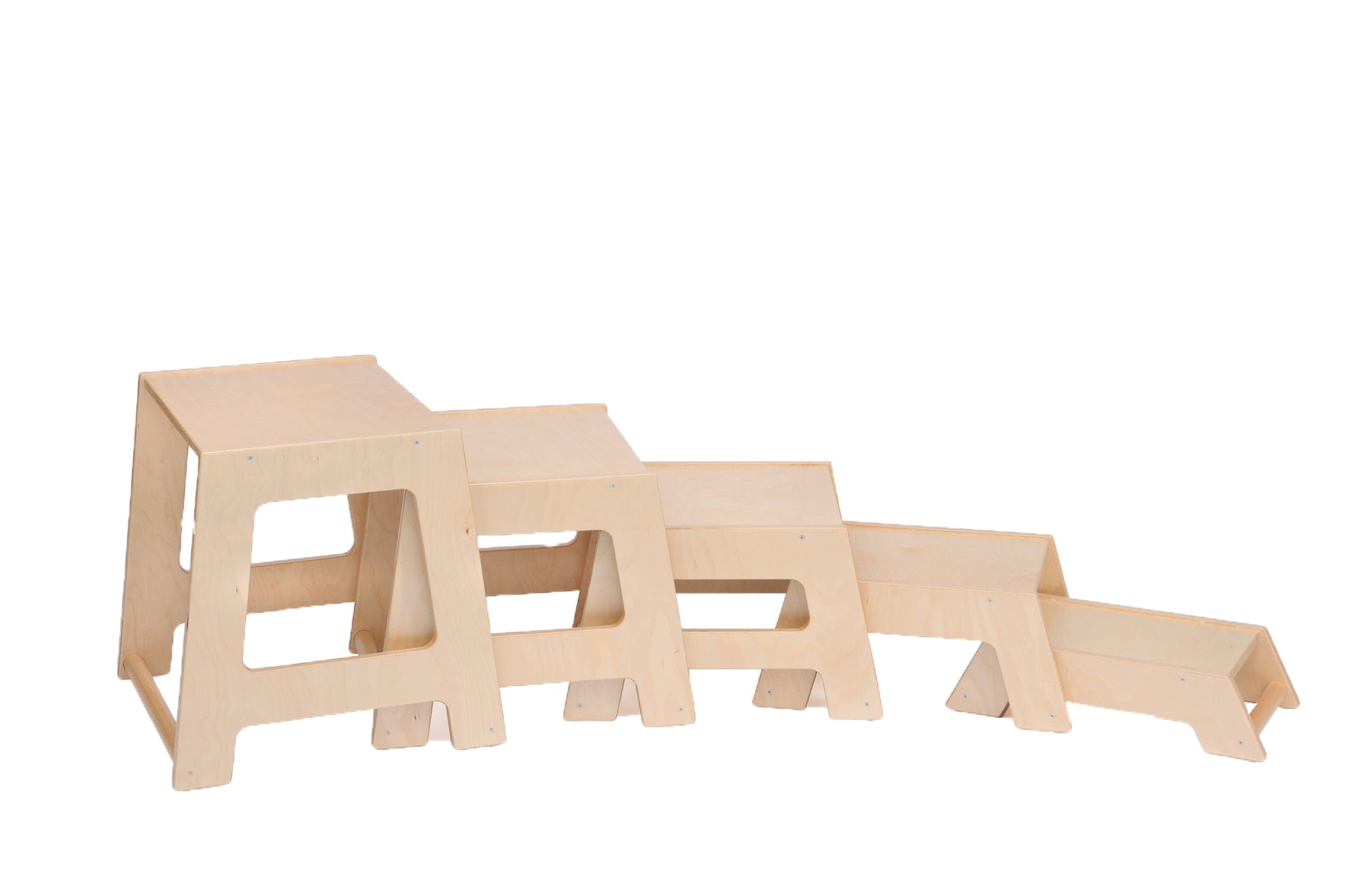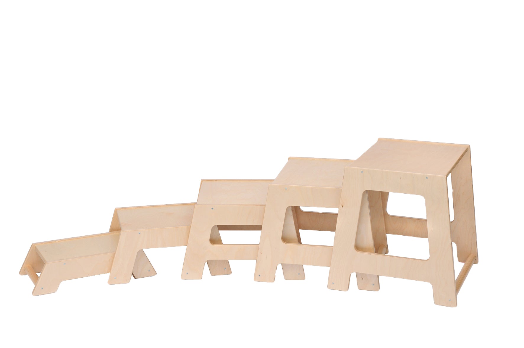 Der 5-teilige Klettersteig ist ein vielseitiges Balanciergerät zum Trainieren von Balance, Koordination und Gleichgewicht. Der Klettersteig bietet abwechslungsreiche Bewegungs- und Spielmöglichkeiten für Kinder. Die fünf unterschiedlich hohen Hocker-Elemente (48 cm, 39 cm, 30 cm, 21 cm, 12 cm) können flexibel kombiniert und aufgebaut werden, um Balance und Motorik zu fördern. Durch die Anordnung mit verschiedenen Abständen, als Treppe, bogenförmig oder über Eck ergeben sich vielfältige Aufbaumöglichkeiten. Sie lassen sich ineinander schieben und somit platzsparend verstauen.