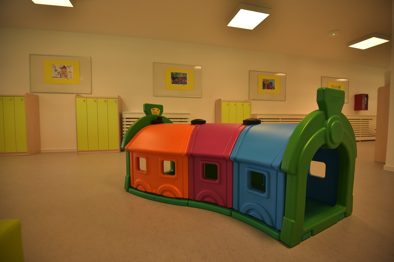 Jeder Waggon wird auf einer Grundplatte befestigt. Das Verriegelungs- und Kopplungssystem garantiert Sicherheit und Stabilität. Durch das Durchkrabbeln können Kinder ihre Koordination und ihr Gleichgewicht verbessern und gleichzeitig Spaß haben.