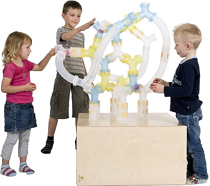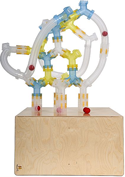 Durch das transparente Material kann beobachtet werden, welchen Weg die Bälle oder andere Objekte einschlagen.