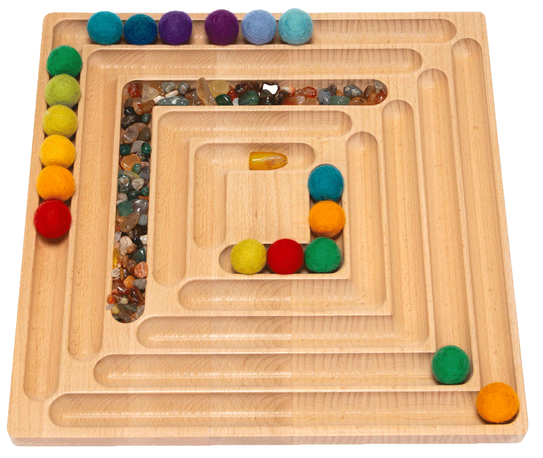 Neben der Kreativitätsförderung bietet das Legebrett auch wertvolle Impulse zur Schulung der Feinmotorik und Konzentration. Die Rillen laden Kinder ein, mit den Fingern ihren Verlauf nachzufahren – eine beruhigende Tätigkeit, die gleichzeitig die taktile Wahrnehmung stärkt. Dadurch eignet sich das Brett ideal für entspannende Konzentrationsübungen im Alltag, etwa in Kindergärten oder Schulen.